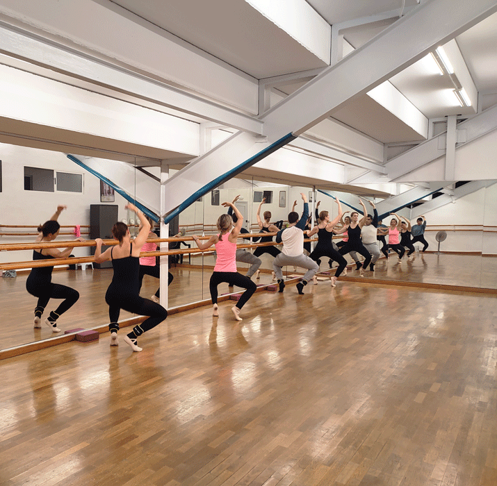 Clase de intensidad baja desarrollada a partir de la metodología del Ballet clásico y los principios del Pilates.